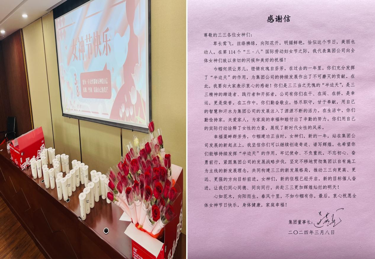 春風十里百花盛,灼灼其華不及卿。三三的女神們,新的征程已經開啟,新的目標催人奮進,讓我們緊跟集團公司的發展戰略步伐,同心同德、同向同行,共赴三三更加輝煌燦爛的明天!未來,三三集團將不斷完善員工人文關懷制度,積極構建和諧的工作環境, 提升員工的歸屬感和幸福感,以實現公司與員工的共贏。